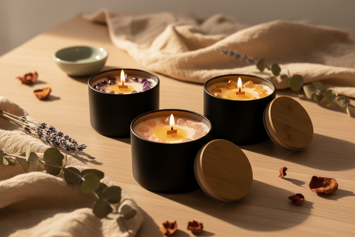 Vela Ritualizada con Cuarzo Rosa | Aralia Candles